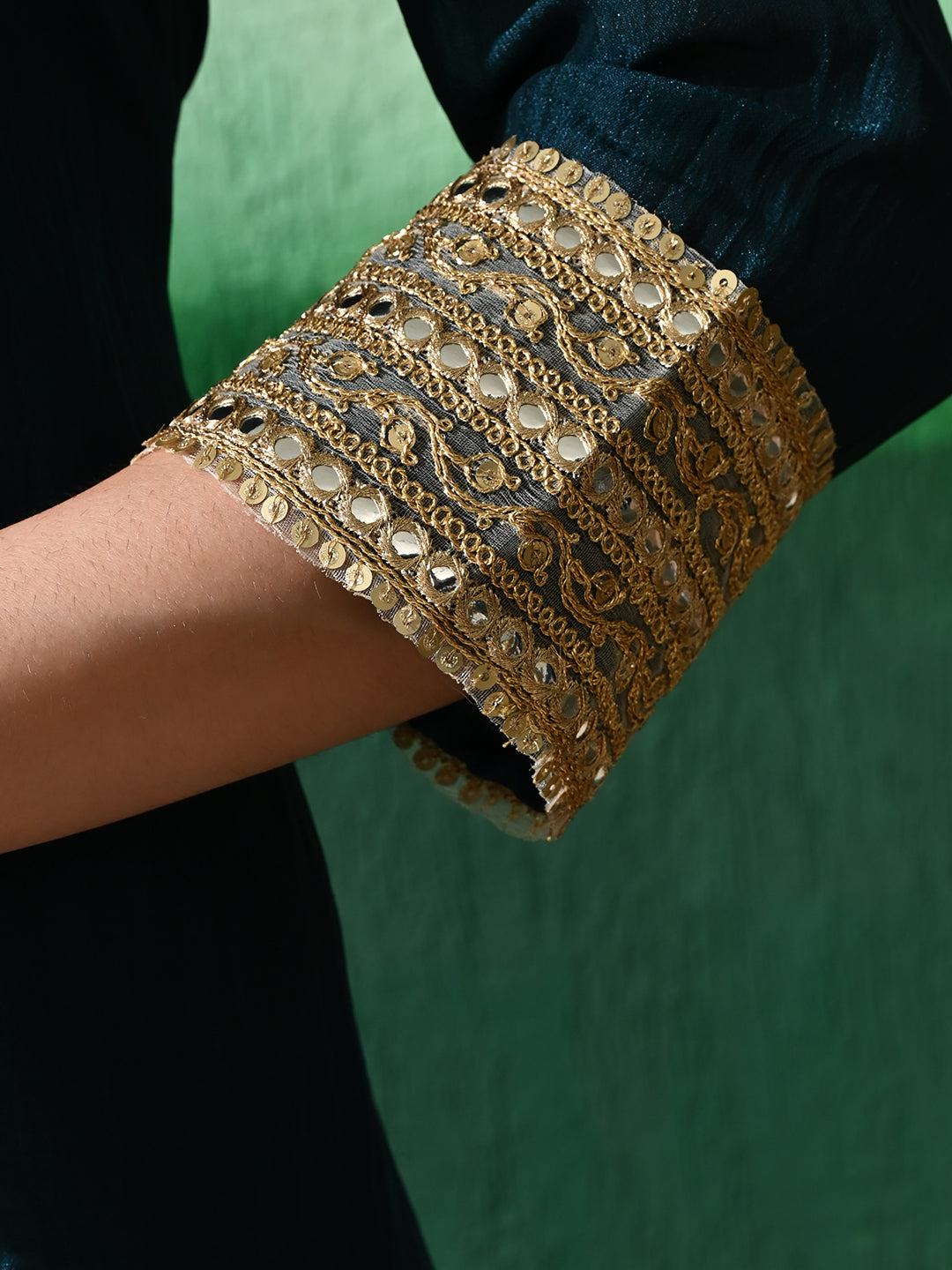 Exquisite Teal Blue Sharara Set: Vichitra Blend Silk with Intricate Gota Patti Work & Art Silk Dupatta