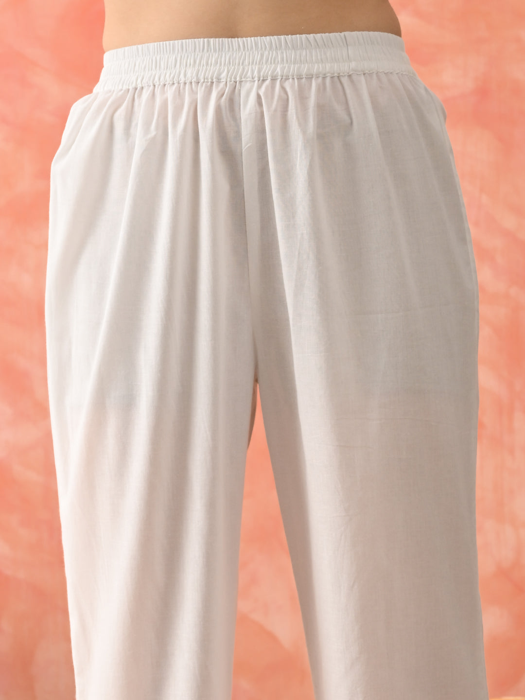 Floral Printed V-Neck Pure Cotton Straight Kurta With Trousers