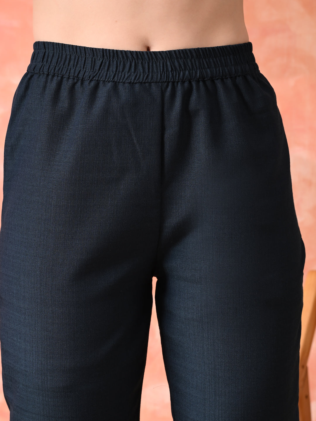 Printed Round Neck A-Line Kurta With Trousers & Dupatta