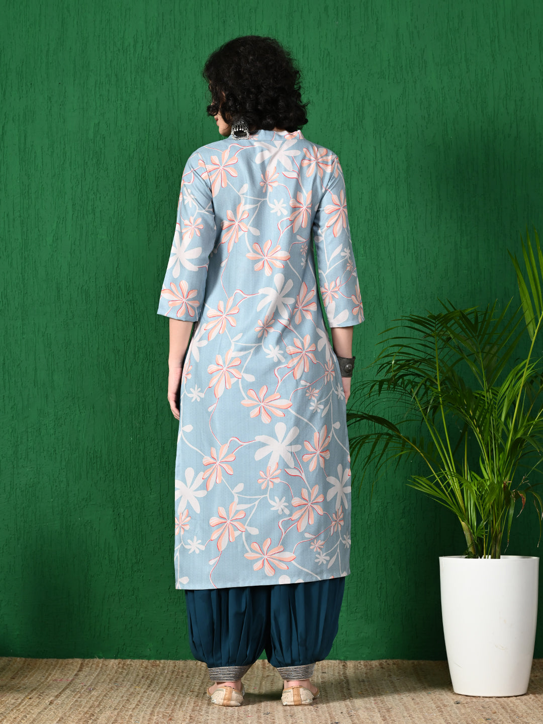 Discover the perfect blend of contemporary style and traditional comfort with our elegant Women's Grey & Peach Floral Printed Poly Rayon Kurta with Navy Blue Patiala Set. This stunning ethnic ensemble is designed for the modern Indian woman who appreciates both fashion and ease. Crafted from high-quality Poly Rayon fabric, this set offers a wonderfully soft, smooth, and breathable feel, ensuring you stay comfortable and chic all day long.